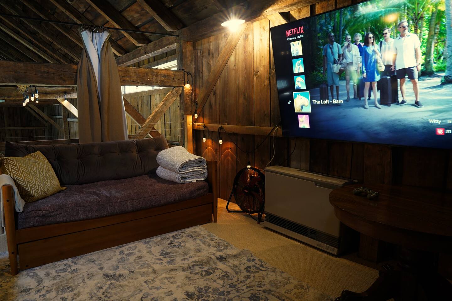 Welcome to the Barn Loft at Riverledge… Find yourself cozy in the Green Mountains, nestled in the loft of our event Barn. Ideal for skiers and groups up to 8 looking for a place to recharge between adventures. 2 miles to Grafton. Blend vintage Vermont with luxury: 1808 original hardwood and vaulted ceilings, + brand new 85” smart tv. Beyond the Barn, freely roam 300 acres, meet our laying hens, roast s’mores over the fire. Hiking and swimming holes in your backyard... the farmscape awaits.