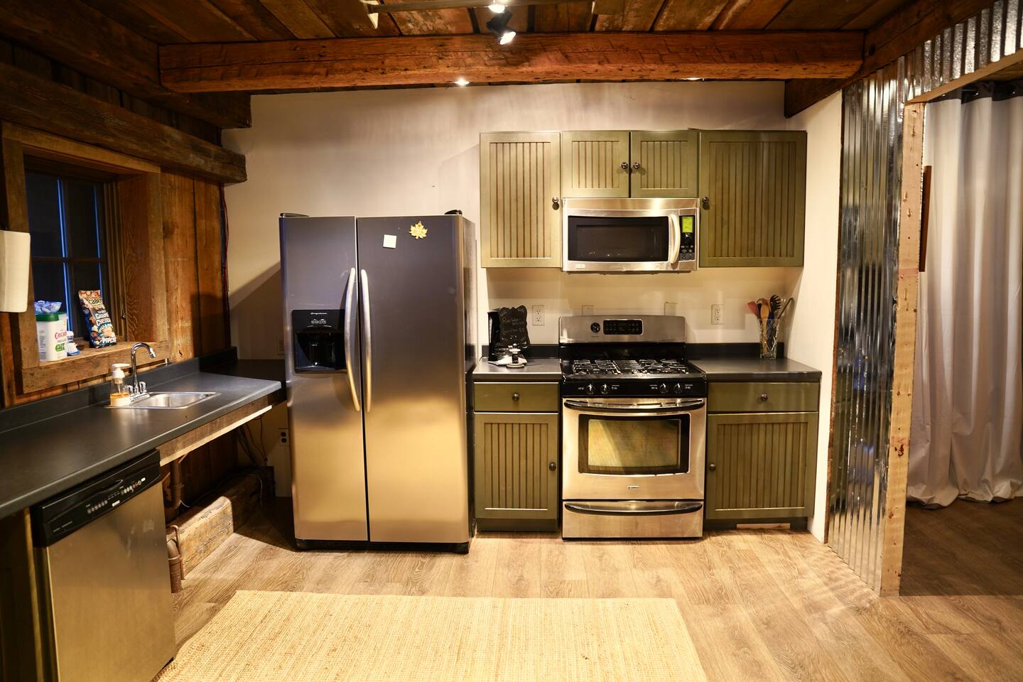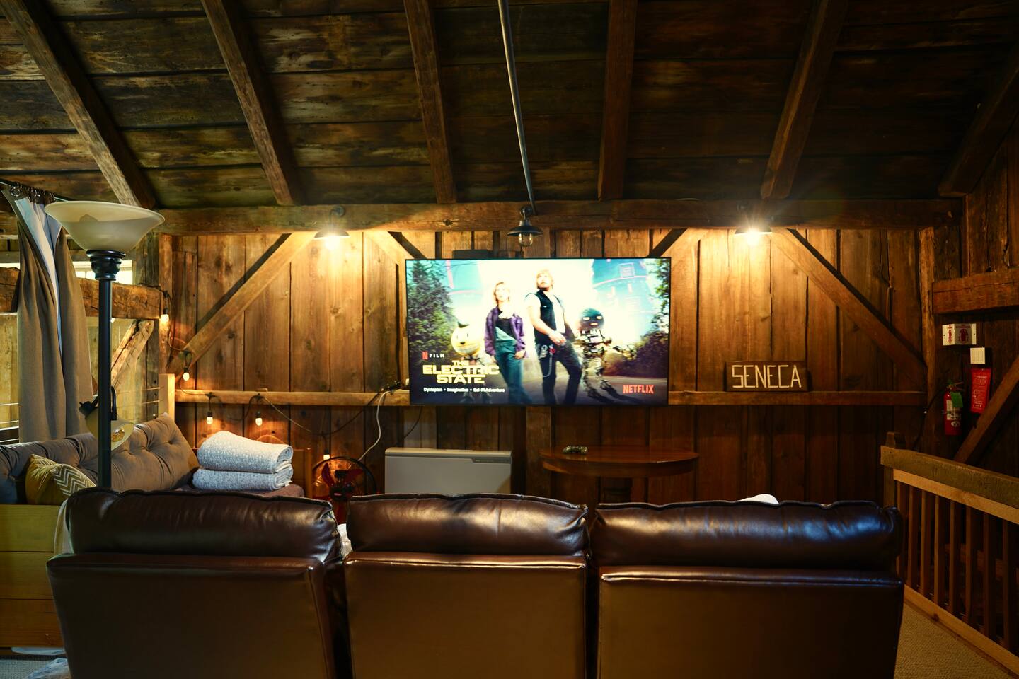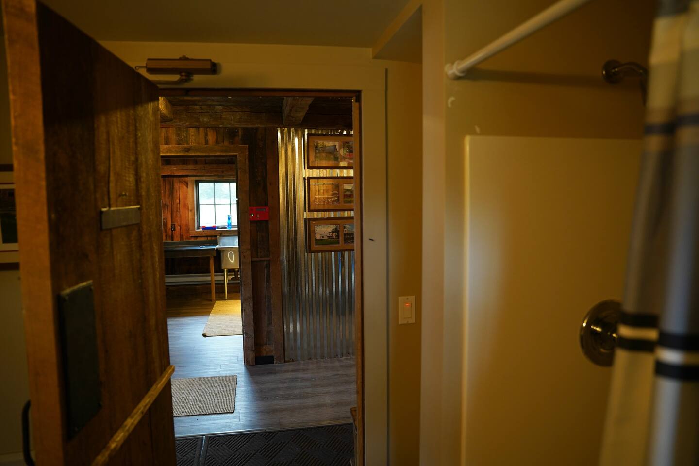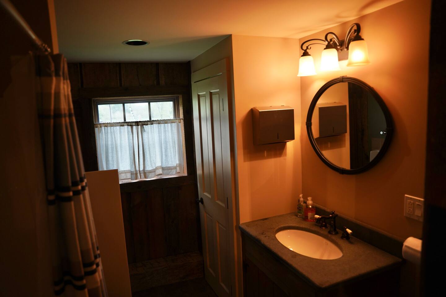 Presenting the Vermont farm experience without compromising on your comfort. Established in 1808, fully modernized + updated with new bunk beds (queen/twin xl), 85" smart TV, new organic cotton bedding and towels. Views from the Loft overlooking the beautiful event space. Gather with your group for popcorn + a movie after a long day, enjoy a hike through the pasture to reconnect with yourself. Large commercial kitchen with ample space to craft meals and dine together. Men's and Ladies' rooms are positioned side by side; find bath essentials in the Men’s room shower. Sleeping arrangements for 8 guests are as follows: 2 twin trundle beds (4 mattresses) 2 twin XL beds (upper bunks) 2 queen beds (lower bunks) 1 queen bed (standalone) Riverledge Farm is proud to offer a strong WiFi signal on the property for your entertainment and ever connectedness. While the cell service in Grafton village is weak at best, we suggest taking this rare opportunity to unplug and find an easy rhythm. Enjoy life as it once was- simple. We welcome everyone, yet a special invitation is extended to those wishing to enter into the slow pace of farm living. While you plan your trip, don’t forget to add this listing to your wishlist!